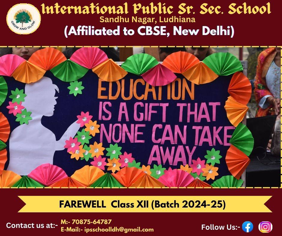 The students, staff and management of International Public Sr.Sec .School bid farewell to the outgoing students of class XII with curiosity and zeal, on 18 January ,2025 . The day was a fiesta devoted to the years spent together with friends and teachers, to reminisce joyous moments.