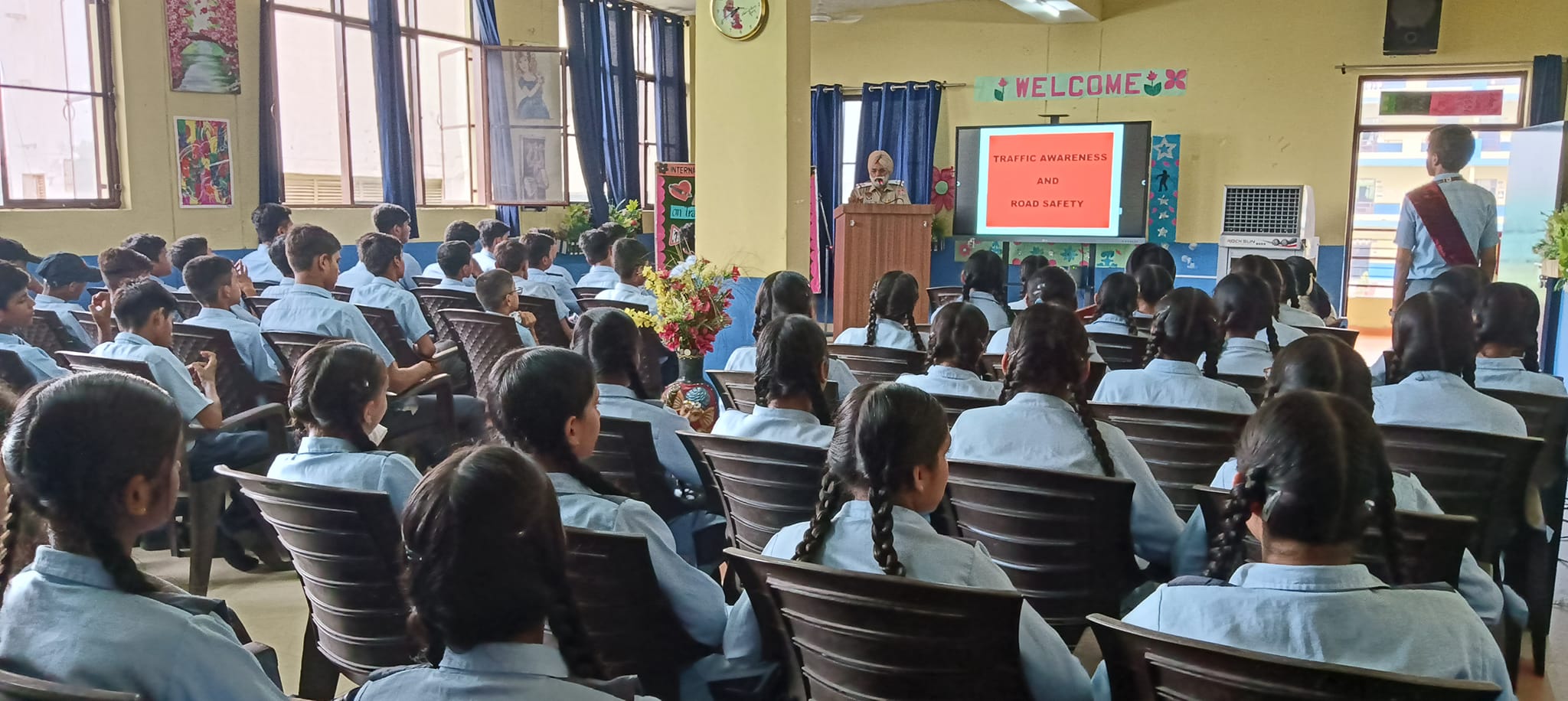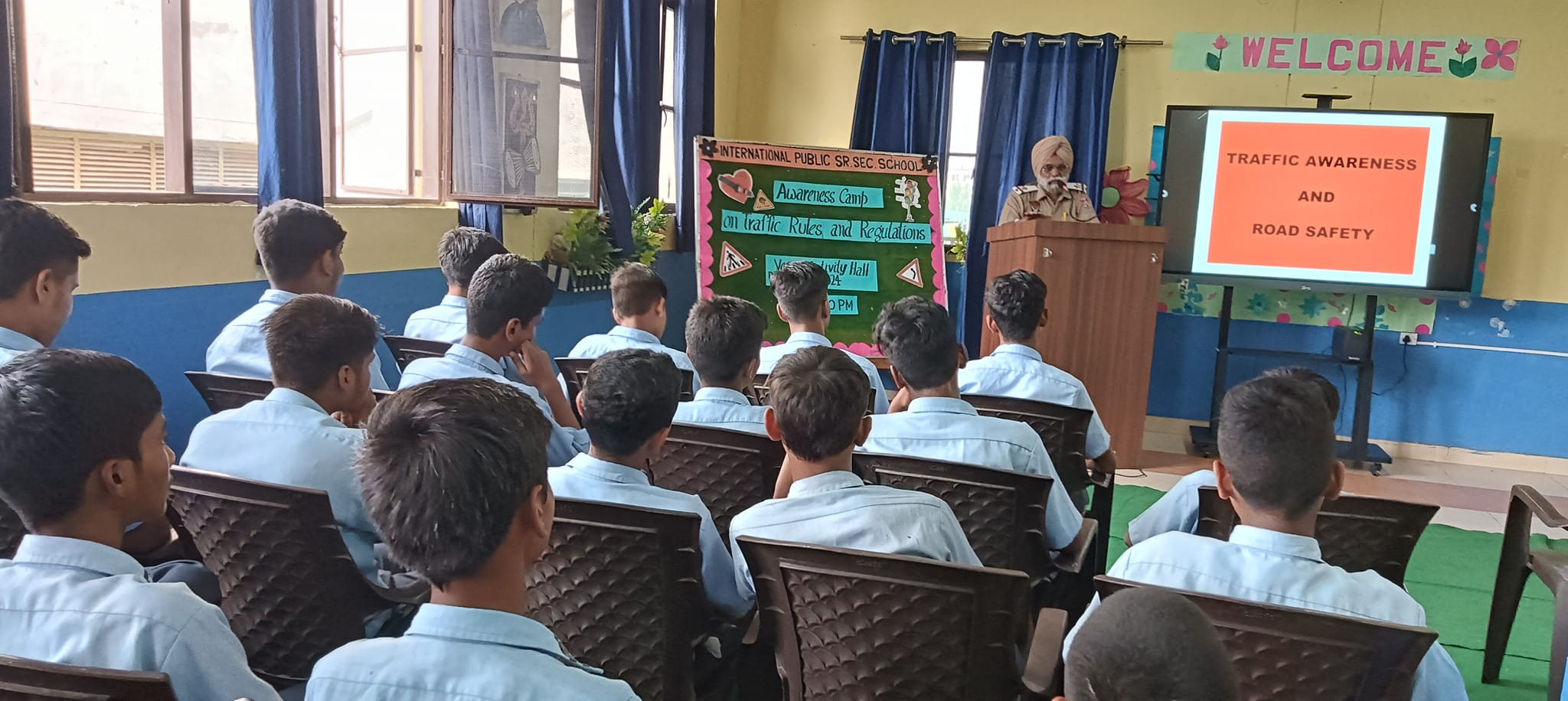 “Drive as if every person on the street is a dear friend or a close family member.” To create awareness among the students on the importance of road safety, an awareness programme was organized for Grade-9 at International Public Sr.Sec.School , Sandhu Nagar, Ludhiana. The event was graced by Honourable Mr. Manjeet Singh,Govt.Resource person and Mr. Avtar Singh (A.S.I). Mr. Manjeet Singh acquainted the students with traffic rules and importance of road etiquettes.He stressed the use of ISI-marked helmets, and fastening seat belts besides following safe pedestrian norms. Mr. Avtar Singh (ASI) urged the students to spread the road safety rules among their near and dear ones. Principal,Mrs.Sheetal Nathaniel appreciated the Traffic Police Department for taking up the initiative of creating a law-abiding society. She wished that such drives should be encouraged more so that upcoming generations can learn to create safe zone for themselves and others.The workshop helped to spread mindfulness and motivate the participants to be traffic ambassadors who shall further spread the message of obeying traffic rules and ensuring road safety .