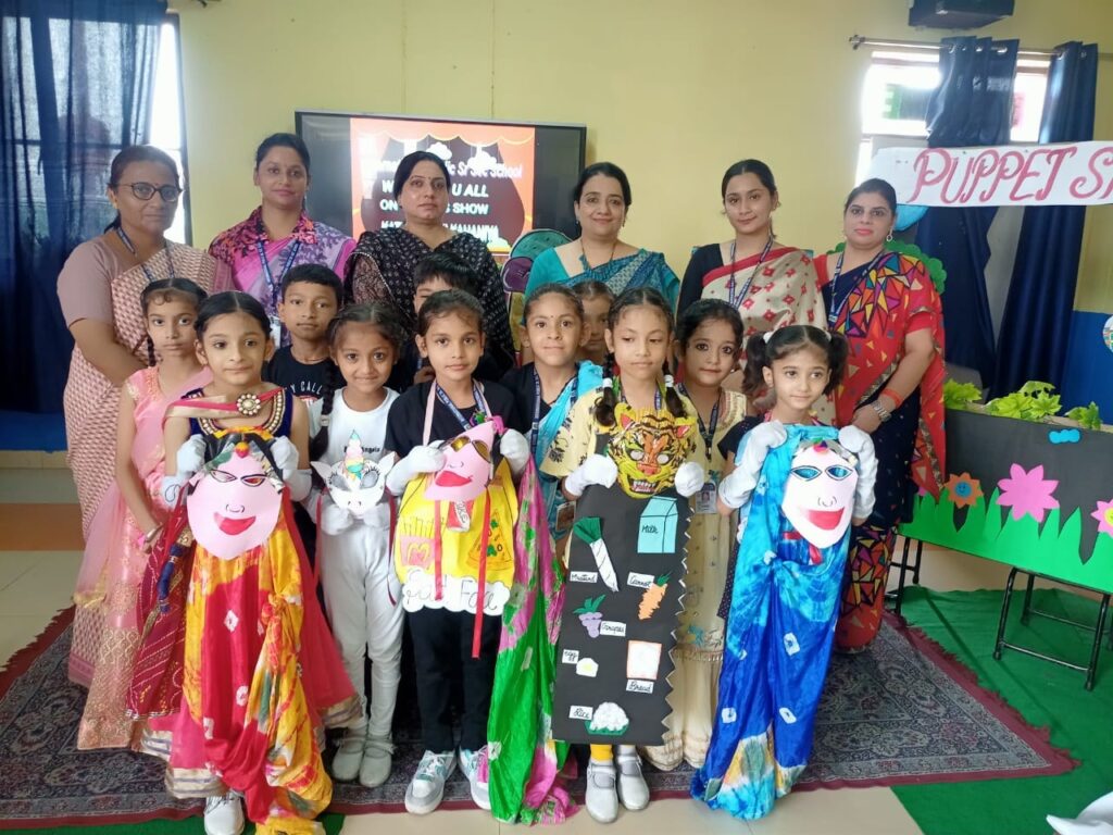 Puppet show allow children to experiment with storytelling and imagination. Explore the basic elements of storytelling. An Inter House Competition Kathputli Ki Kahaniyan – A Story by Human Puppet for Class II